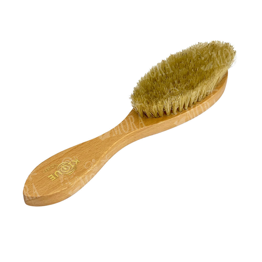 Cepillo para el cabello de cerdas naturales de jabalí, dándole en cada cepillado brillo y suavidad al cuero cabelludo con mango de madera para un mejor agarre.